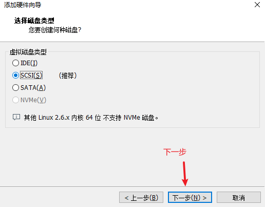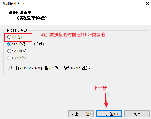 在添加一块硬盘的时候,将原来的 SCSI 类型改为 IDE 类型即可。